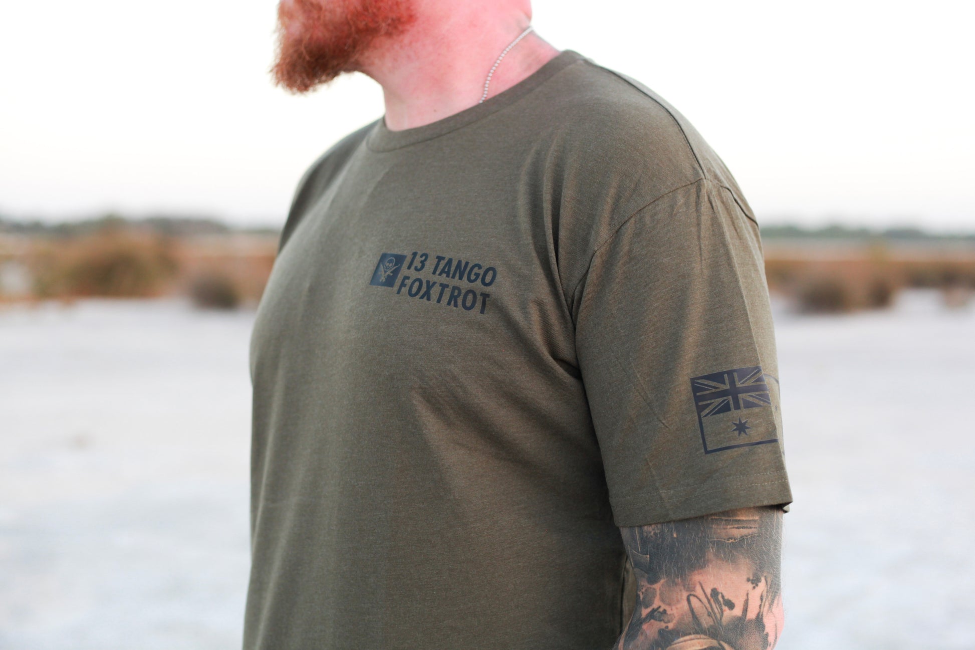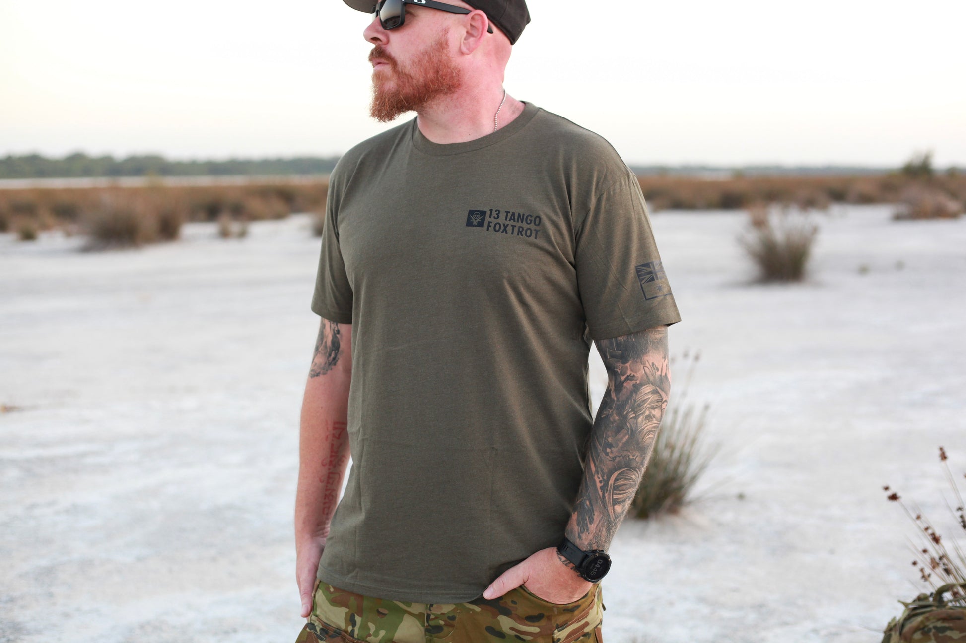 - Minimalist 13TF design - Black 13 Tango Foxtrot logo on the breast for subtle yet bold statement.